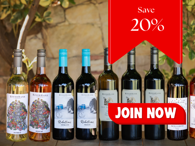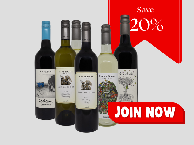 RiverBank Estate Six and Twelve Bottle Wine Club Save Over 20% Delivered To Your Door Every 3 or 6 Months Members Enjoy Exclusive Events Exclusive offers Free Shipping Six Bottle Club White Wines $135.00 12 Bottle Club White Wines $260.00 Six Bottle Club Red Wines $135.00 12 Bottle Club Red Wines $260.00 Six Bottle Club Mixed Wines $135.00 12 Bottle Club Mixed Wines $260.00