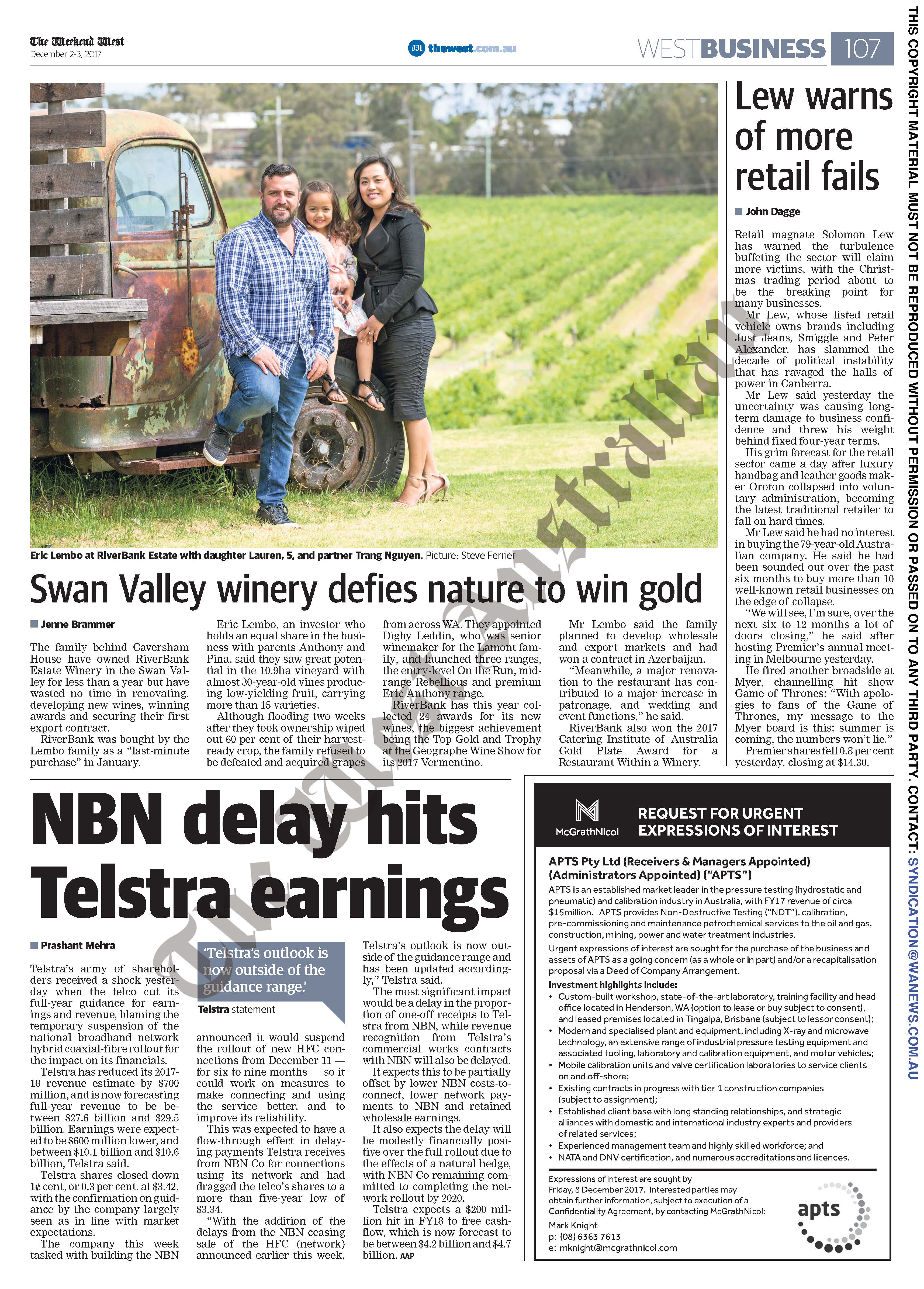 Published on November 23, 2017 in The West Australian in the West Business Insider.
